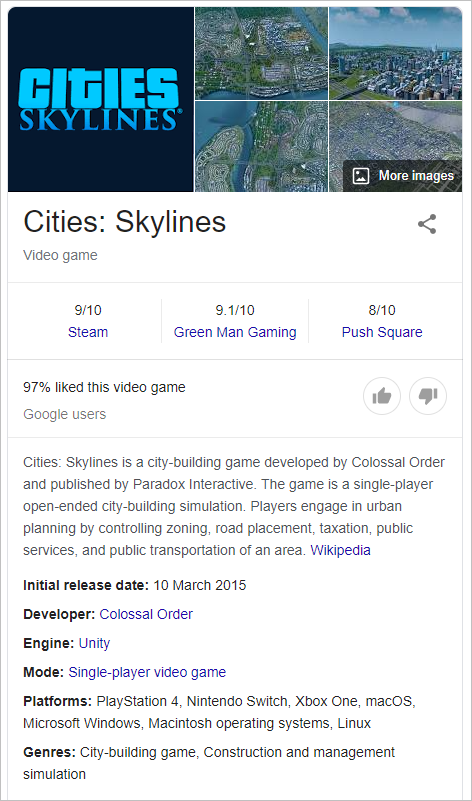심시티와 비슷한 장르의 게임으로 1인칭게임으로 다양한 조건과 배경에서 도시 건설을 하는 게임입니다. 스팀점수는 파밍시뮬레이터19와 마찬가지로 9/10입니다.