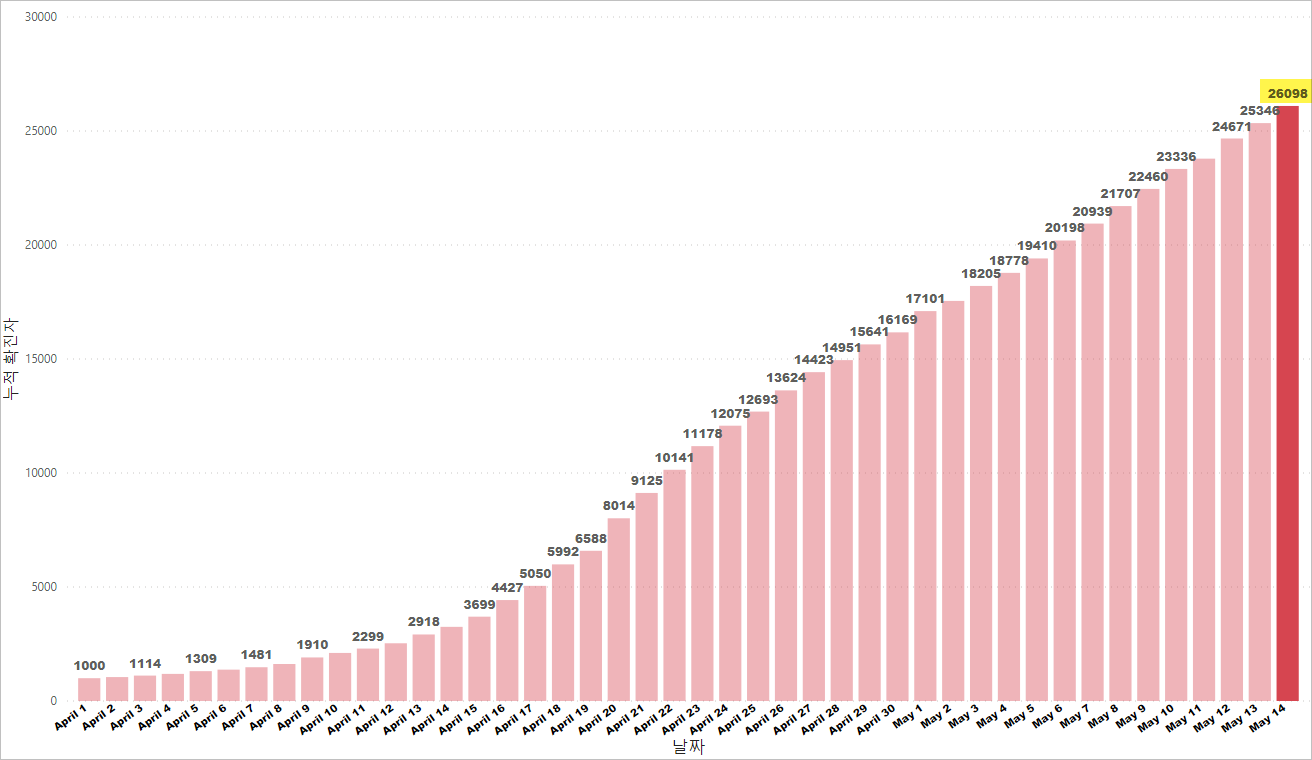 - 일일 완치 기록 중 가장 많은 완치 인원 1,164명을 5월 14일에 확인.