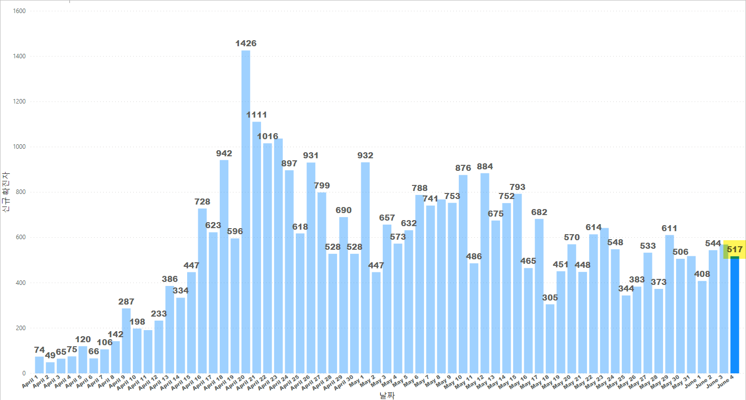 4. 퇴원: 23,904 (6월 4일 퇴원 322)