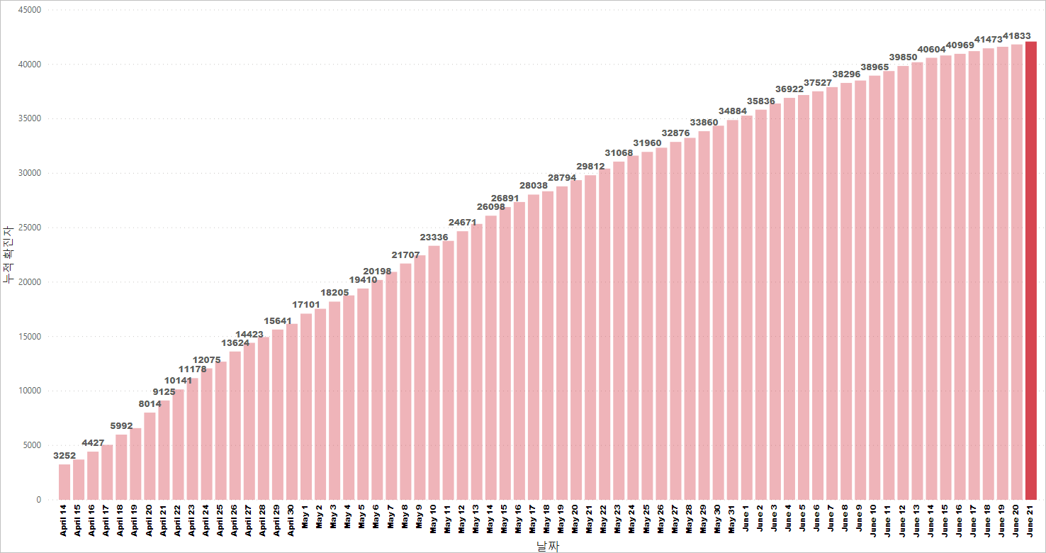싱가포르 코비드19 누적 확진 케이스: 42,095명