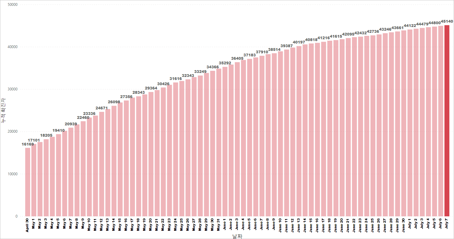 싱가포르 코비드19 누적 확진 케이스: 45,140명