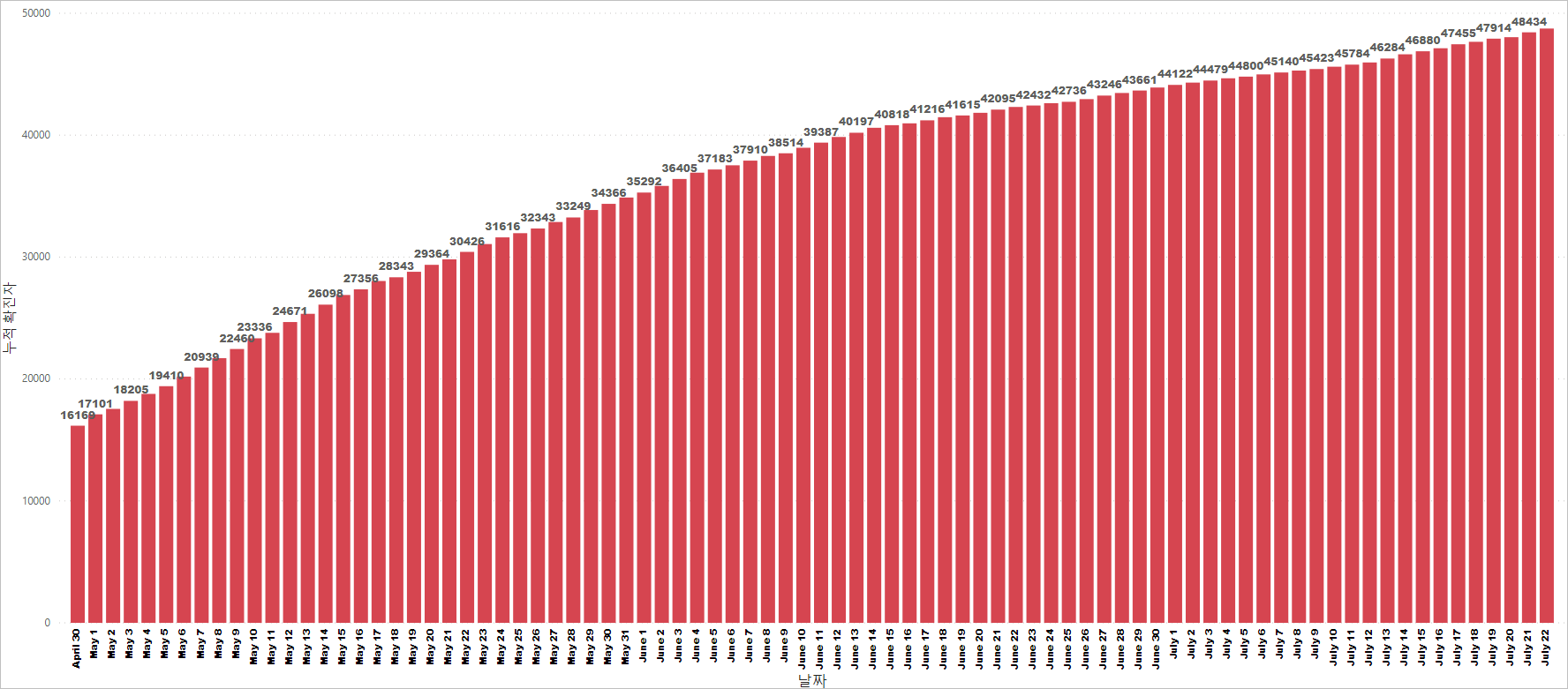 싱가포르 코비드19 누적 확진 케이스: 48,744명