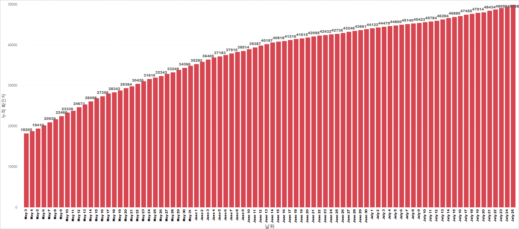 싱가포르 코비드19 누적 확진 케이스: 49,888명