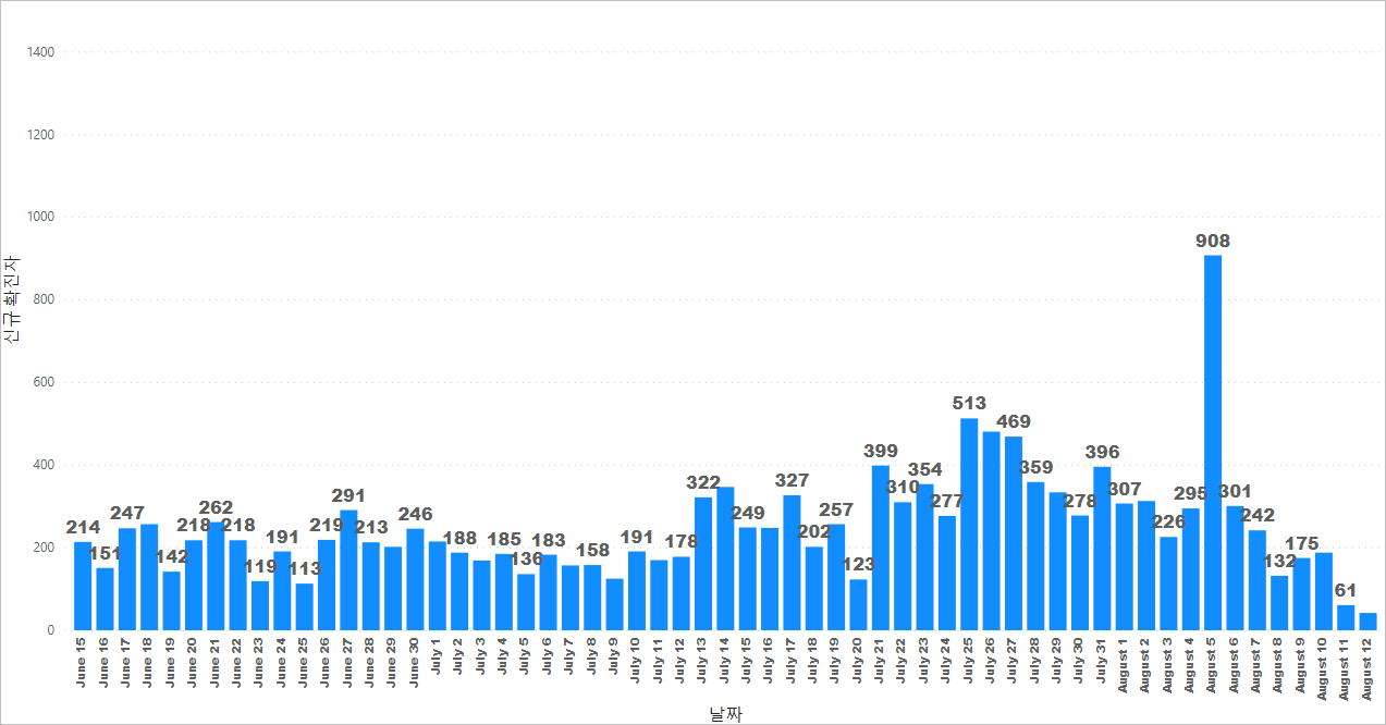 4. 퇴원: 50,520 (8월 12일 퇴원 392)