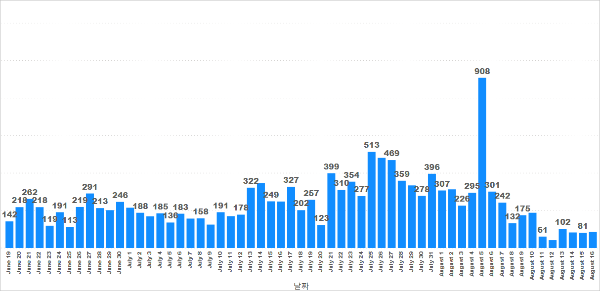 1. 8월 1일 이후 현재까지 일평균 신규확진자는 221명, 해외 유입 확진자는 7명으로 집계