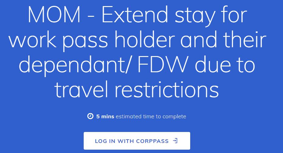 일반적인 상황에서는 워크 패스 취소 후에 출국해야 되는 기간 내에 싱가포를 을 떠나는 것이 문제가 없겠지만 covid-19의 영향으로 대부분의 나라에서 여행제한을 실시하고 있어 귀국할 항공편을 찾기가 쉽지 않은 상황입니다. 이런 이유로 현재 싱가포르 맨파워를 담당하는 MOM(Ministry of Manpower)에서는 워크 패스 취소 후에 여행제한으로 인하여 귀국할 방법이 없는 분들을 대상으로 체류기간 연장을 해주고 있습니다.