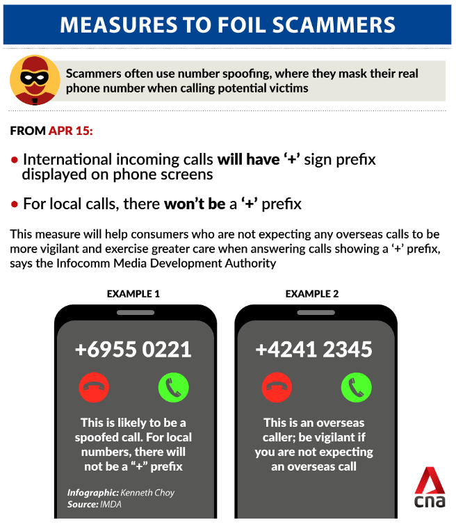 SINGAPORE: All incoming international calls will be prefixed with a plus sign (+) beginning April as part of efforts to protect members of the ...