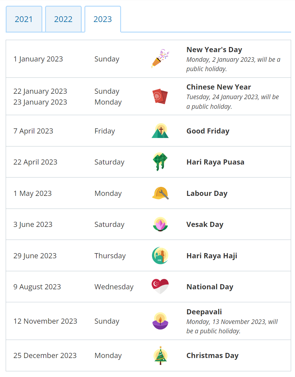 | 싱가포르 노동부 발표 2023년 공식 공휴일 (0) | 2023.05.27 |