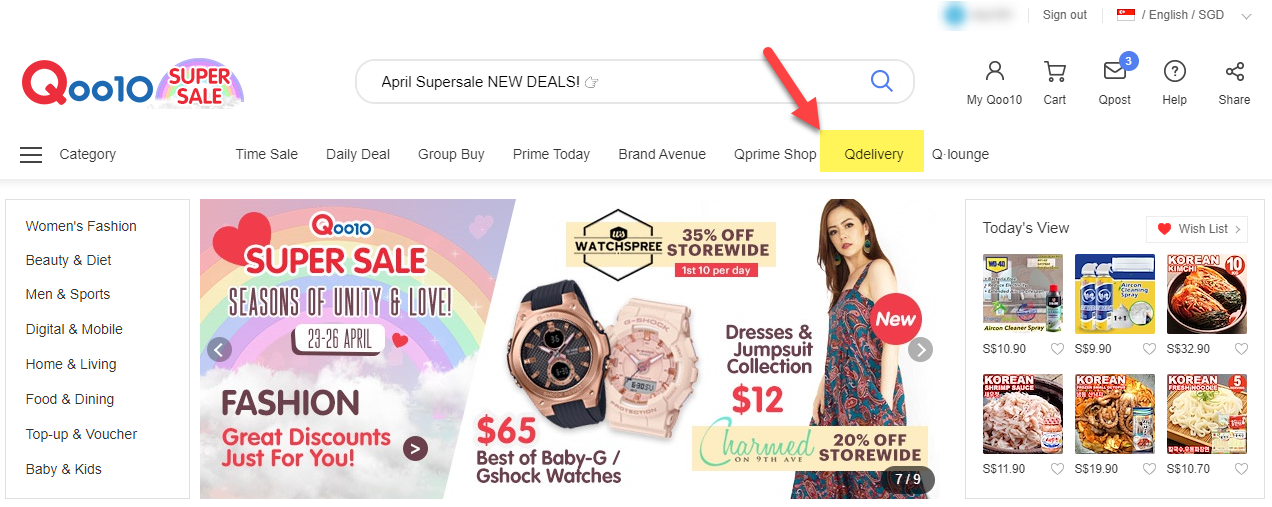 싱가포르 큐텐에서 큐익스프레스를 이용하여 한국에서 싱가포르로 보내는 택배 접수하기