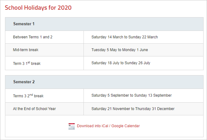 - Term 3 1st break: 7월 18일 토요일부터 7월 26일 일요일까지
