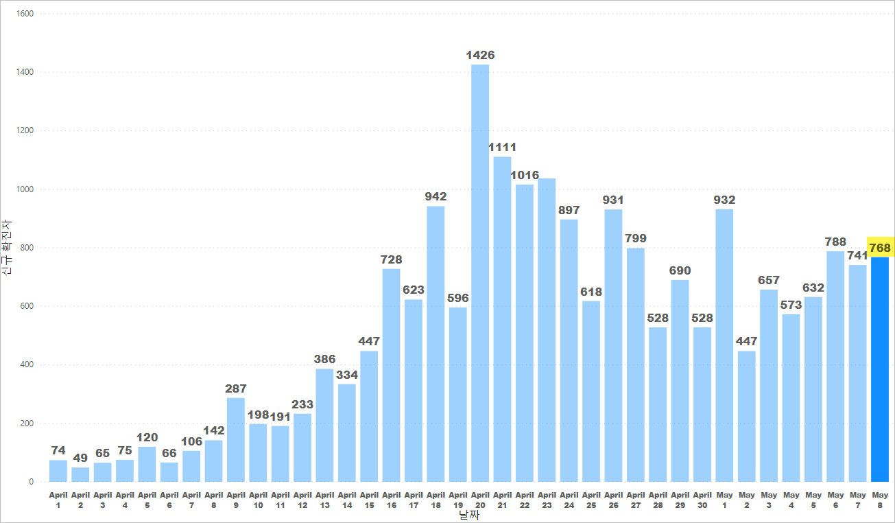 싱가포르 코비드19 신규 확진 768명, 전체 21,707명, 5월 8일 금요일