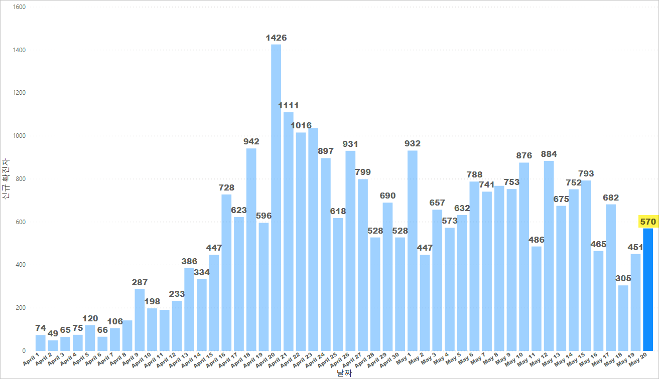 싱가포르 코비드19 신규 확진 570명, 전체 29,364명, 5월 20일 수요일