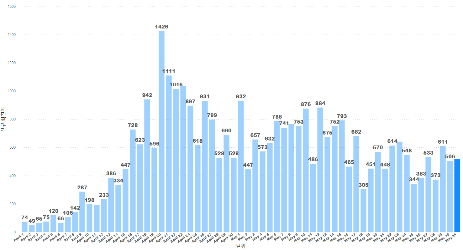 싱가포르 코비드19 신규 확진 518명, 전체 34,884명, 5월 31일 일요일