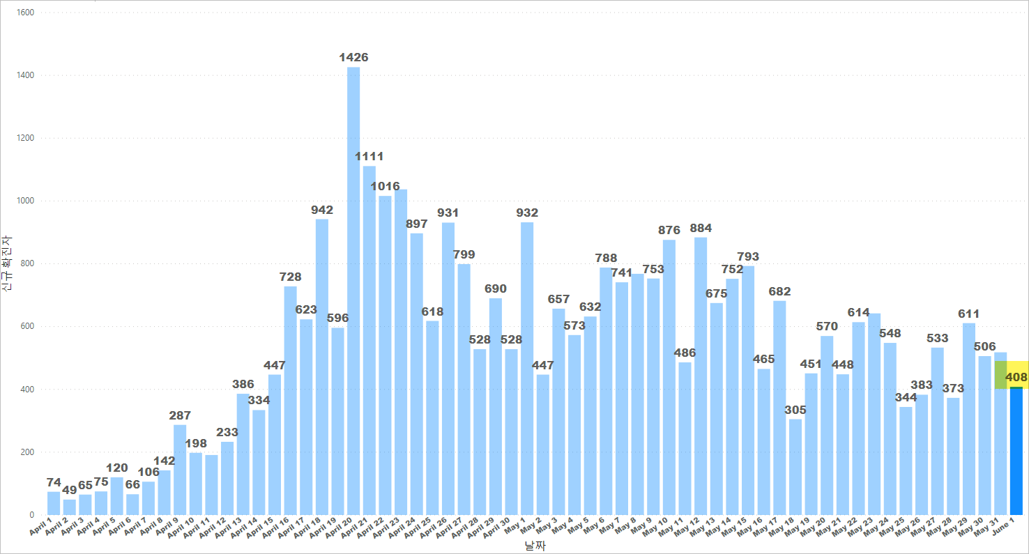 - 퇴원: 22,466 (6월 1일 퇴원 767 )