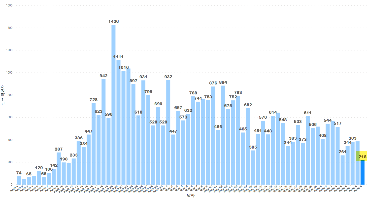 싱가포르 코비드19 신규 확진 218명, 전체 38,514명, 6월 9일 화요일