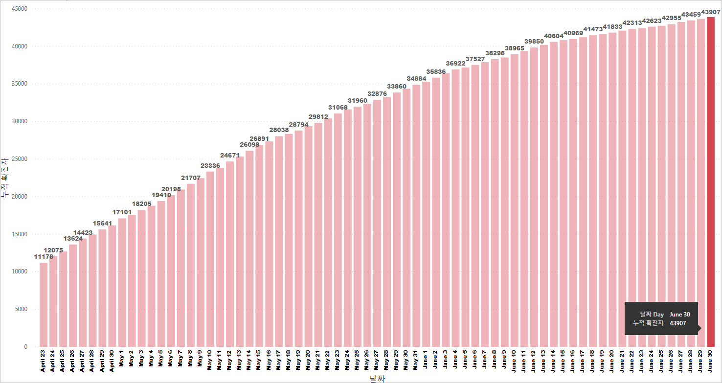 싱가포르 코비드19 누적 확진 케이스: 43,907명