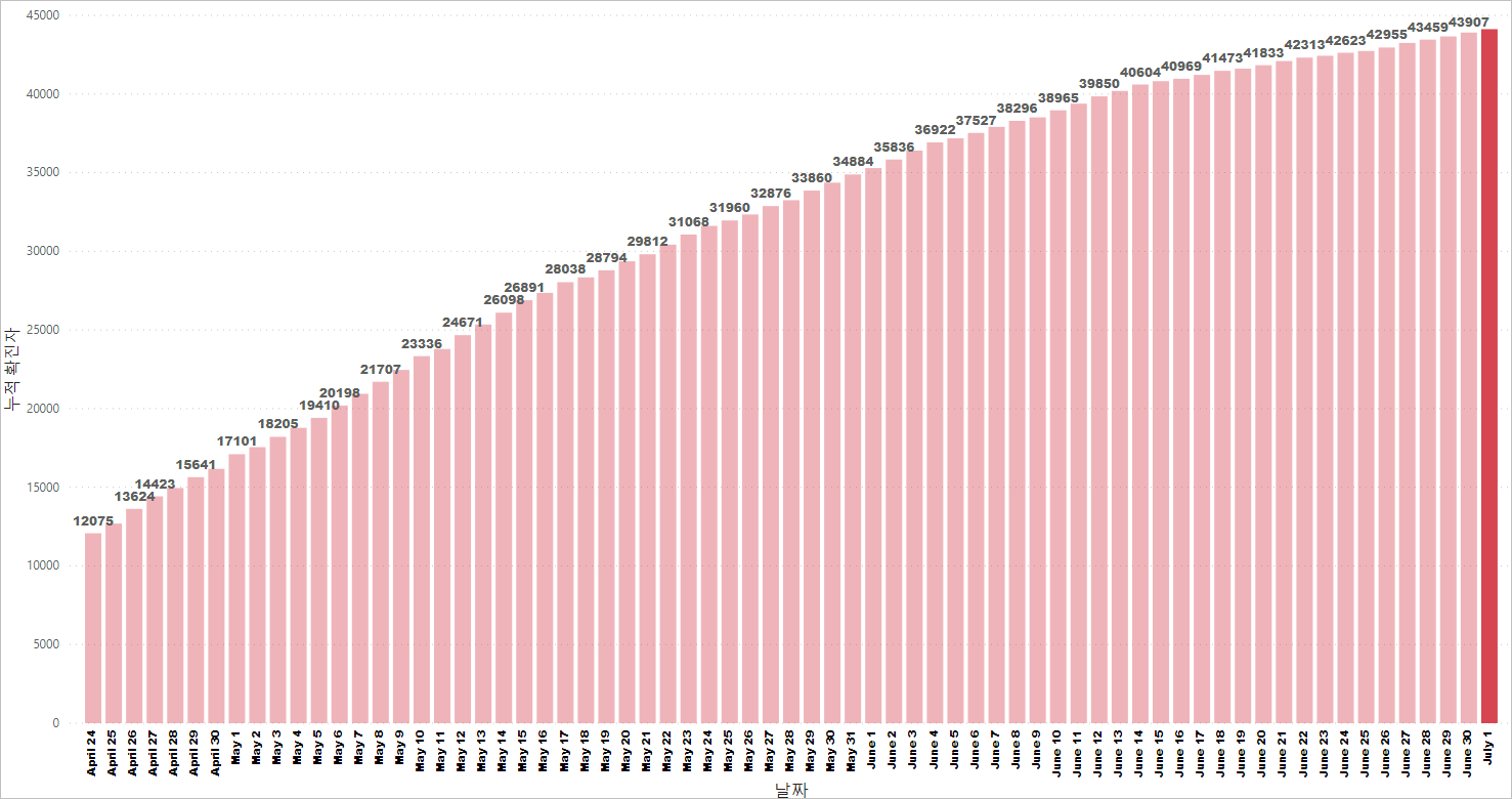싱가포르 코비드19 누적 확진 케이스: 44,122명