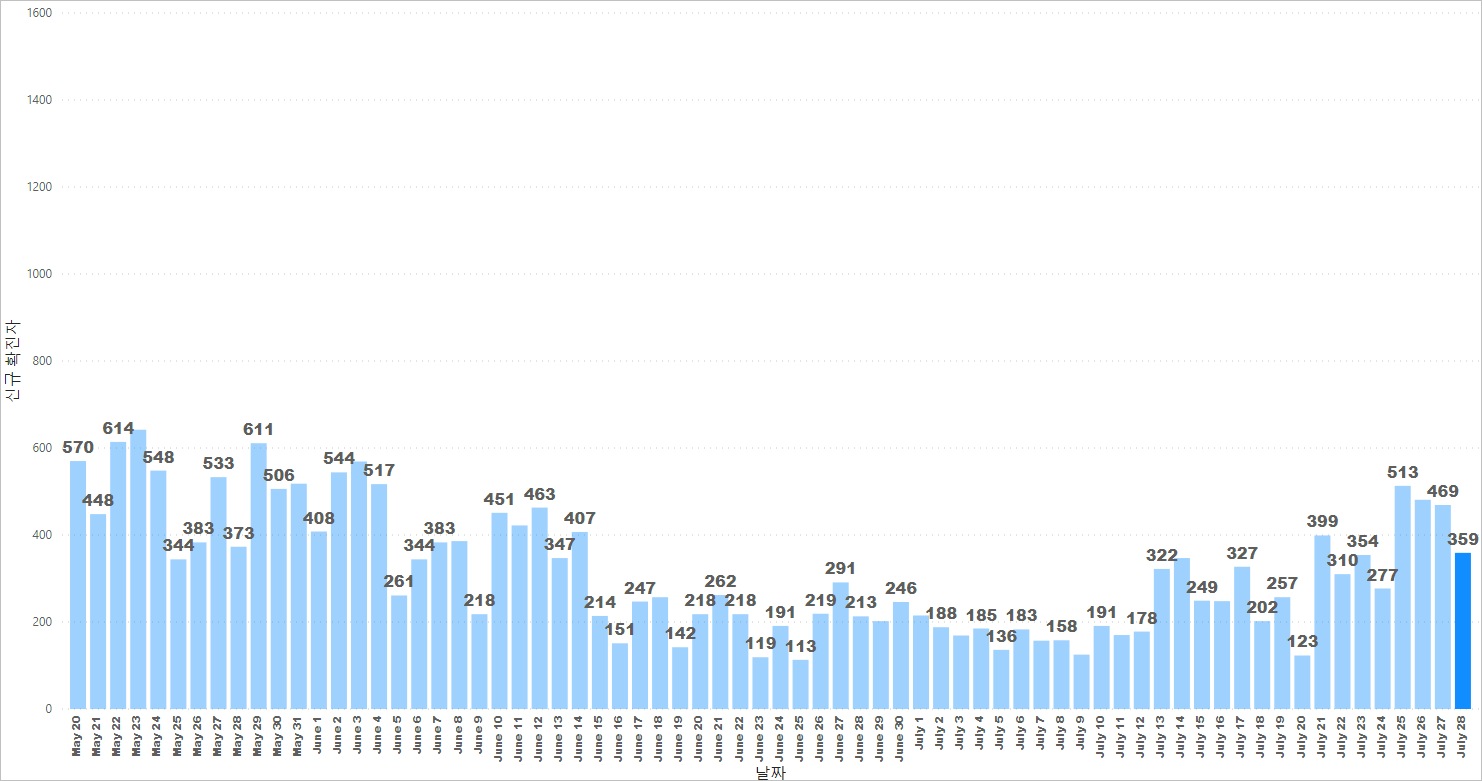 싱가포르 코비드19 신규 확진 359명, 전체 51,197명, 7월 28일 화요일