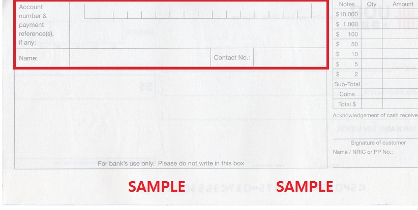 A: DBS 및 다른 은행(UOB, OCBC 기타 등등)에서도 처리 가능합니다. 중요한 부분은 뒷면에 기입한 은행 계좌의 체크 디파짓 박스에 넣어야 합니다. UOB 계좌 번호를 적었다면, UOB의 체크 디파짓 박스에 넣어야 합니다. 다른 은행의 체크 디파짓 박스에 넣으면 처리가 안됩니다.