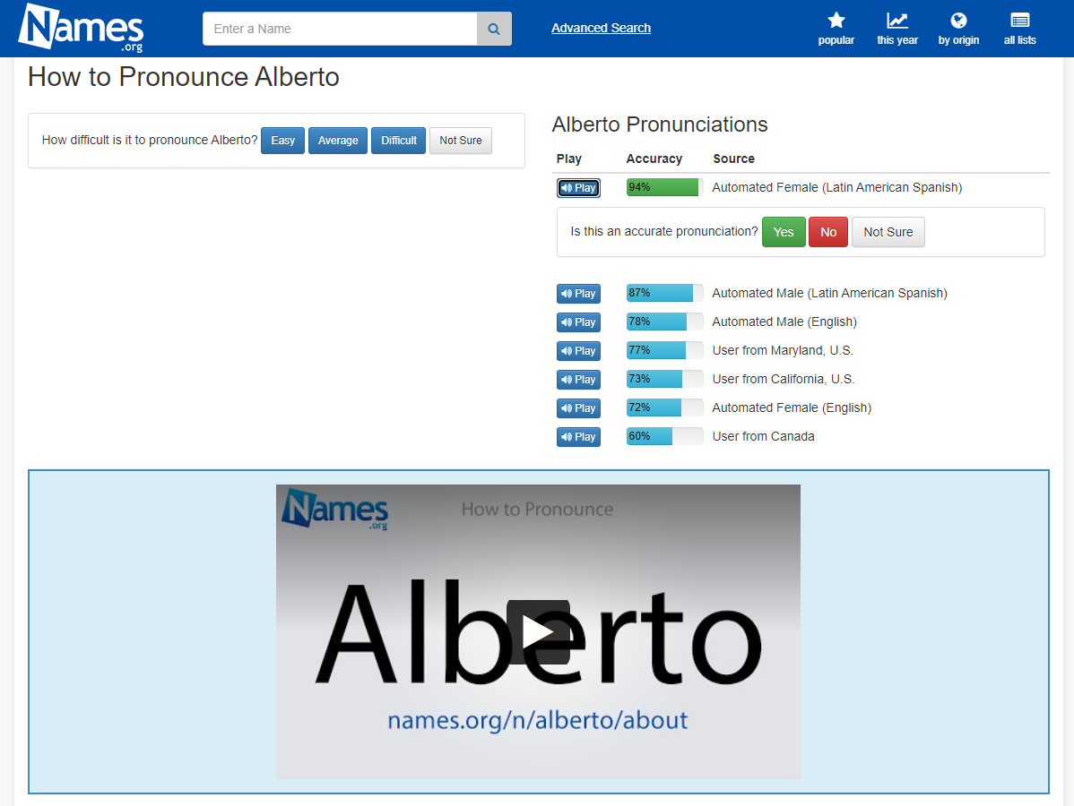 영어 또는 외국인 이름 발음이 어려울 때 참고할 수 있는 사이트 names.org