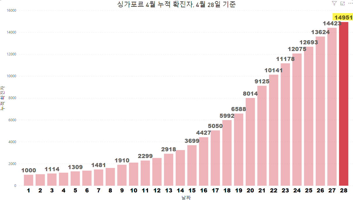 싱가포르 코비드19 신규 확진 528명, 전체 14,951명, 4월 28일 화요일
