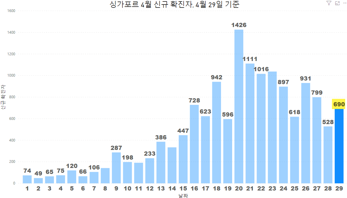 싱가포르 코비드19 신규 확진 690명, 전체 14,951명, 4월 29일 수요일